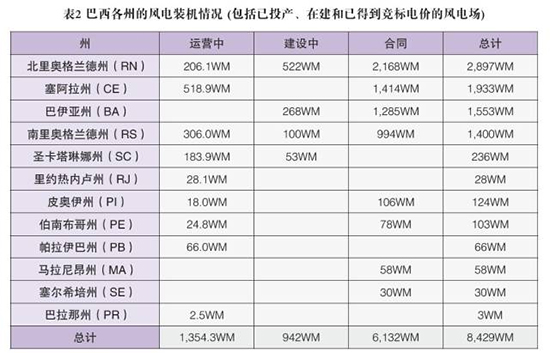 根據巴西電力工業發展規劃,2014年巴西風電裝機容量要達到700萬千瓦,成為僅次于中國和美國的世界第三大風電市場。預計到2022年,巴西風電總裝機容量可達2010萬千瓦。龐大的風電市場使世界知名的風電投資商和制造商陸續云集巴西。