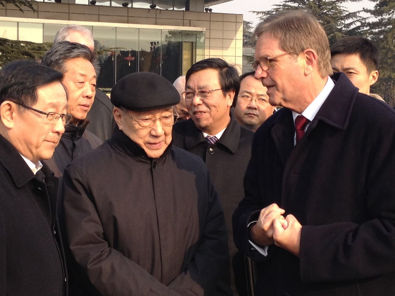 原國務院夫總理李嵐清在展覽現場與大眾汽車CEO海茲曼親切交談
