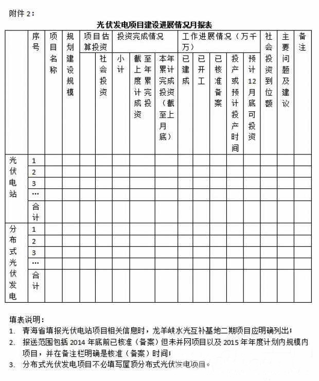 光伏發(fā)電項目建設(shè)進展情況月報表