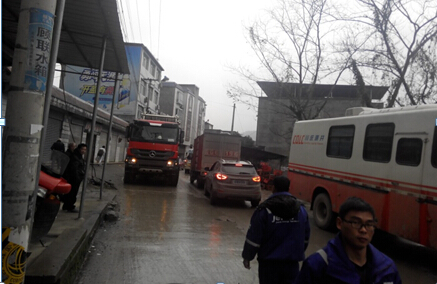 頁巖氣開發的大型車輛讓武陵山深處的小鎮顯得有些擁擠。身著杰瑞工裝的工人指揮著對向開來的江漢連續管作業車從川慶測井的車輛旁通過,涪陵頁巖氣開發的開放程度可見一斑。