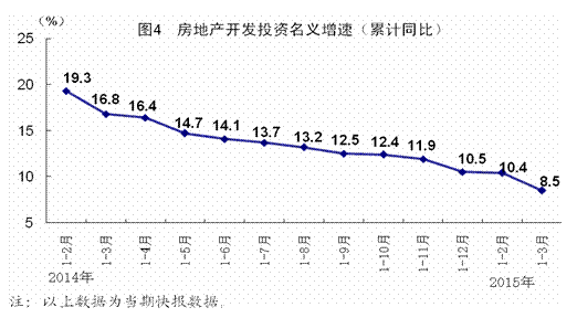 一季度,全國房地產開發投資16651億元,同比名義增長8.5%(扣除價格因素實際增長9.5%),其中住宅投資增長5.9%。房屋新開工面積23724萬平方米,同比下降18.4%,其中住宅新開工面積下降20.9%。全國商品房銷售面積18254萬平方米,同比下降9.2%,其中住宅銷售面積下降9.8%。全國商品房銷售額12023億元,同比下降9.3%,其中住宅銷售額下降9.1%。房地產開發企業土地購置面積4051萬平方米,同比下降32.4%。3月末,全國商品房待售面積64998萬平方米,同比增長24.6%。一季度,房地產開發企業到位資金27892億元,同比下降2.9%。
