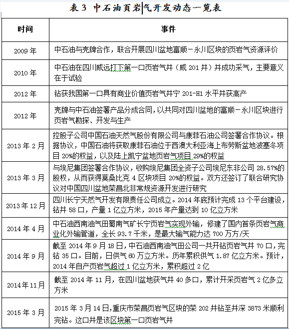 中石油施行“引進來”戰略,2009年開始與殼牌合作,在四川的長寧和威遠地區展開勘探與評價試驗,2012年取得突破性進展。