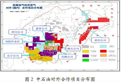 截至2014年11月,中石油公司在四川盆地擁有頁巖氣礦權5.65萬平方千米,其中75%國內合作開發、10%國際合作開發、3%風險作業開發、12%自營開發。