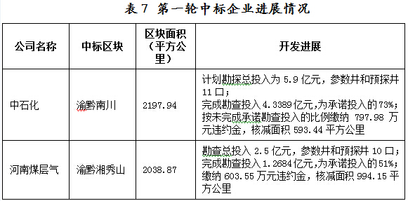 (二)第一輪中標企業進展情況(中石化川南區塊、 河南煤層氣秀山區塊)