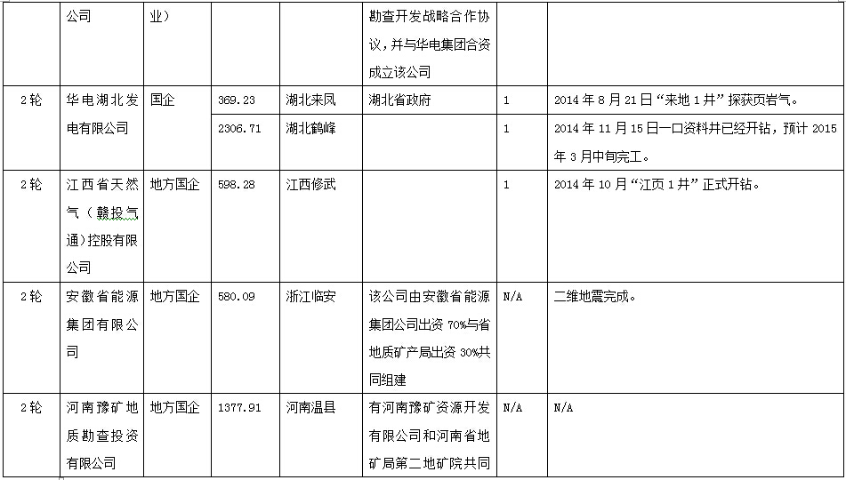 (三)第二輪中標企業進展情況(16家企業,19個區塊);