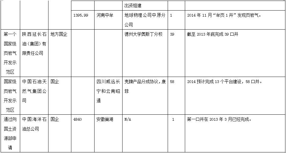 (資料來源:主要來自中國能源網研究中心整理,部分來自《關于實現中國頁巖氣目標建議》報告。)
