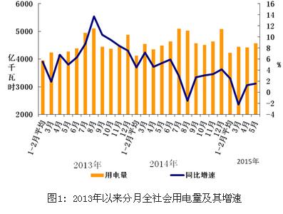 1-5月份,全國全社會用電量21889億千瓦時,同比增長1.1%,增速同比回落4.2個百分點。