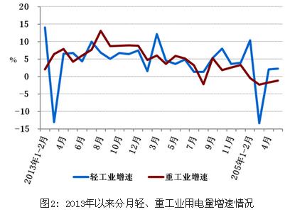 5月份,全國工業用電量3369億千瓦時,同比下降0.6%,占全社會用電量的比重為73.8%。其中,輕工業用電量584億千瓦時,同比增長2.3%,占全社會用電量的比重為12.8%;重工業用電量2785億千瓦時,同比下降1.2%,占全社會用電量的比重為61.0%。