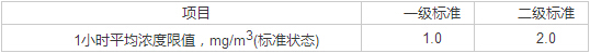 表2環(huán)境空氣中非甲烷總烴濃度限值