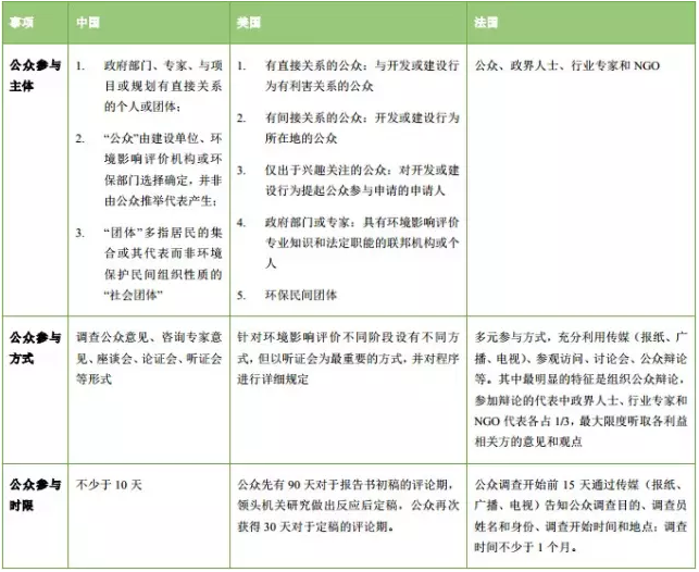 中國、美國、法國環(huán)境影響評價公眾參與對比