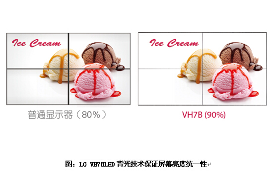 LGVH7B具有更高的亮度均勻性。顯示器亮度為700nits同時采用業內以專業著稱的IPS硬屏技術以及LED背光技術,有效避免了其他顯示器出現的屏幕局部較暗的現象。LED背光技術保證了拼接屏屏幕亮度的高度統一,有效消除了任意視角時的顏色變化和失真情況,即便是在大型場所大規模安裝也能夠保證用戶在任意角度觀看都能獲得清晰的畫面,保持整塊拼接墻持續的亮度的統一性,為用戶帶來完美的顯示解決方案。