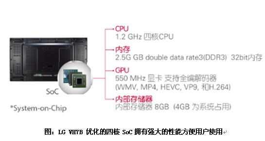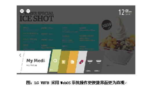 基于webOS系統,LGVH7B支持HTML5用戶可以十分容易的搭建運行于各種平臺或設備的應用程序,最大限度的方便用戶使用與管理。通過LG的SDK和技術支持,LGVH7B在內容建設和維護方面更加便捷,用戶能夠輕而易舉管理內容。并且,LGVH7B通過WebOS的顯示器啟動欄,使界面顯示更為直觀,大幅提升用戶在觀看時的體驗。