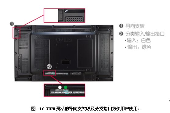 為方便用戶使用,LGVH7B配置了靈活的導向支架以及分類接口,通過導向支架用戶可以控制拼接墻的平整度,保證用戶觀看時的視覺舒適度。分類的輸入和輸出接口有效防止了菊鏈發生接入錯誤,保證內容輸入輸出的正確性。