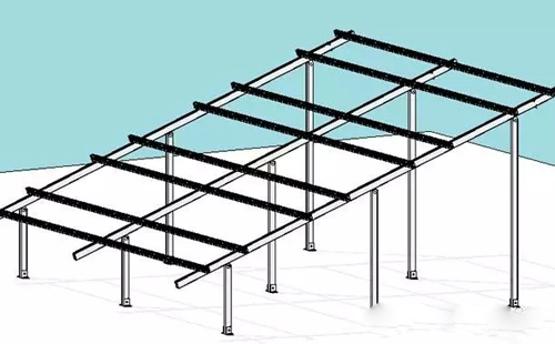 支架的設(shè)計(jì)需要了解常用的導(dǎo)軌型號和配件,如圖5為混凝土屋面所采用的比較常見的支架架構(gòu)(方陣由2*4片組件組成),由橫梁、豎梁、方管、角鋁、L支腳、T型螺栓和內(nèi)六角螺栓、內(nèi)扣連接件、壓塊等配件組成,深化設(shè)計(jì)需要確定各個(gè)配件型號、尺寸和數(shù)量。