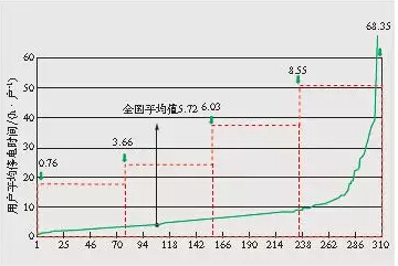 圖4 2014年全國城市供電企業城市用戶平均停電時間分布