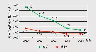 圖3 2010~2014年城市、農村用戶平均停電次數趨勢