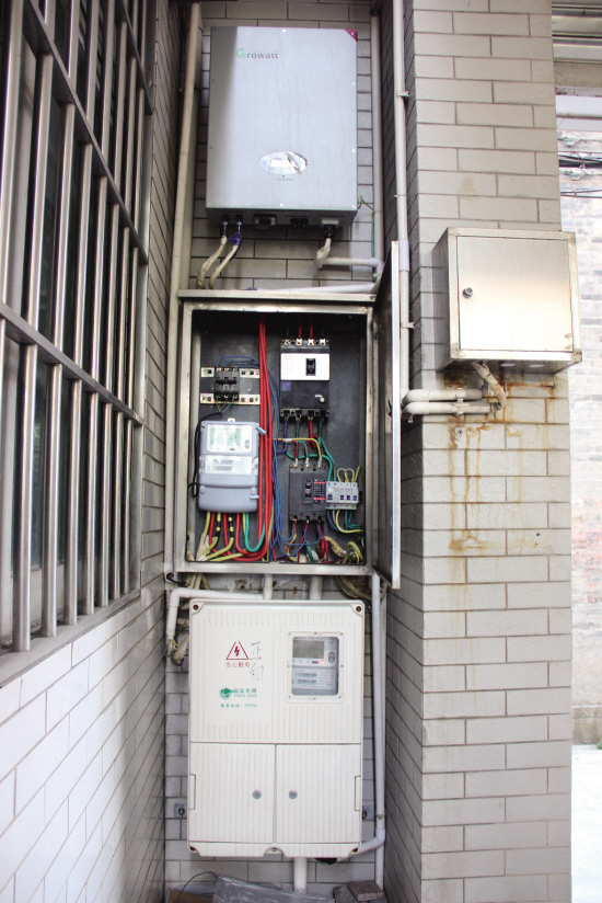從上到下分別是:逆變器、發(fā)電余量上網(wǎng)計(jì)量裝置、總發(fā)電量計(jì)量裝置