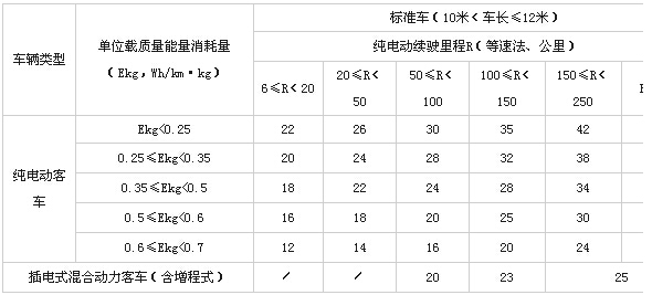 注:上述補助標(biāo)準(zhǔn)以10-12米客車為標(biāo)準(zhǔn)車給予補助,其他長度純電動客車補助標(biāo)準(zhǔn)按照上表單位載質(zhì)量能量消耗量和純電動續(xù)駛里程劃分,插電式混合動力客車(含增程式)補助標(biāo)準(zhǔn)按照上表純電動續(xù)駛里程劃分。其中,6米及以下客車按照標(biāo)準(zhǔn)車0.2倍給予補助;6米<車長≤8米客車按照標(biāo)準(zhǔn)車0.5倍給予補助;8米<車長≤10米客車按照標(biāo)準(zhǔn)車0.8倍給予補助;12米以上、雙層客車按照標(biāo)準(zhǔn)車1.2倍給予補助。