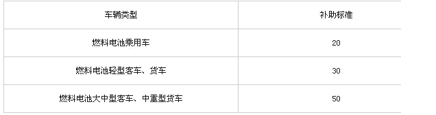 四、燃料電池汽車推廣應(yīng)用補助標(biāo)準(zhǔn)(單位:萬元/輛)