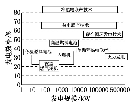 發(fā)電效率是指原動(dòng)機(jī)輸出能源與輸入能源的比值,用百分?jǐn)?shù)表示。發(fā)電效率因發(fā)電方式不同而各有差異。一般的火力發(fā)電效率只有30%左右,熱電聯(lián)產(chǎn)可達(dá)65%~70%,而冷熱電三聯(lián)產(chǎn)可達(dá)80%以上。