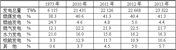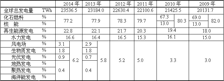 表5 2009-2014年全球電力生產(chǎn)結(jié)構(gòu)