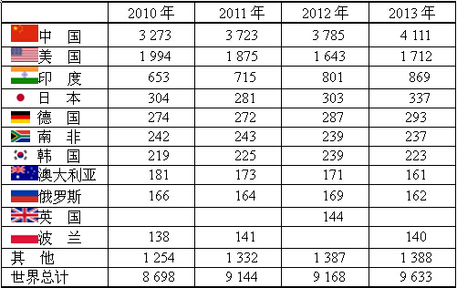 雖然表4(以及表7~14)所列的2013年數(shù)據(jù),似乎有點(diǎn)老,卻是在《2015年關(guān)鍵能源數(shù)據(jù)統(tǒng)計(jì)》報(bào)告的,算是最新的了。