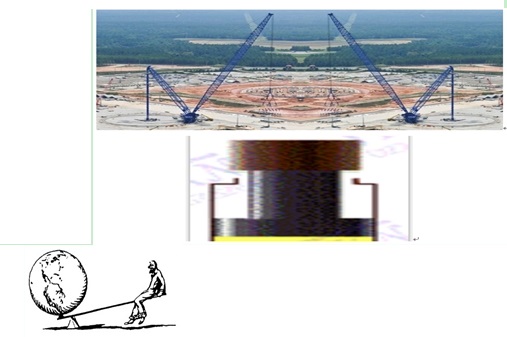【28】本模式的特征之二十七,輸入的重力能,其產生的源頭只是微不足道的能量。這是一個非常重要的關鍵問題所在,如果這個問題吃不準,便容易將本模式理解成傳統觀念上的永動機了,而永動機是違反能量平衡原理的,也是不可能變成現實的。大家看一看起重機源頭是以什么作為動力的。是用燃料(比如油氣),是用電能,還是有第三種選擇?如果我講用油氣或者電能,這個數據不經過實踐就難以說清楚,我先講第三種選擇:不用電,不用油氣等燃料,它的終端可以是以人的能量作為動力來源的。起重機原理主要是杠桿原理加滑輪原理,還有液壓原理。起重臂用的是杠桿原理,機器起重時用的是滑輪原理,起重臂的升降作用用的是液壓原理,這些原理都是四兩撥萬斤,都是非常省力的。可以說,打擊系統的終端是人的能量,這就像農民勞動收獲糧食一樣,是一個能量平衡系統,輸入的是辛苦的勞動(人的能量),產出的是所需要的糧食、水果、蔬菜等。經此分析便知,其實即使用電也用不了多少的,在真正實踐起來,可以考慮用電的。如附圖所示,杠桿原理。滑輪原理和液壓原理。