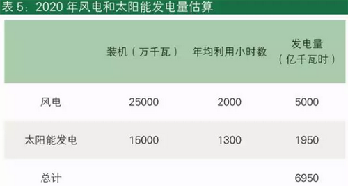 我們假設(shè)2020年中國能夠?qū)崿F(xiàn)風(fēng)電和太陽能發(fā)展目標(biāo),如表5所示,那么二者加起來的發(fā)電量可以達(dá)到6950億千瓦時(shí),比2014年的水平增加了280%。假設(shè)2020年的補(bǔ)貼額在2014年570億元的水平上也增加280%,將達(dá)到2161億元。