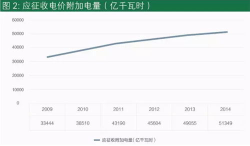 本文估算了2009-2014年電價(jià)附加的征收總額,并以2010年為比較年份,將估算出的電價(jià)附加額與發(fā)改委公布的同期可再生能源發(fā)電補(bǔ)貼進(jìn)行對照,我們發(fā)現(xiàn)截至2014年,可再生能源發(fā)電的補(bǔ)貼需求與電價(jià)附加征收之間沒有缺口,征收的電價(jià)附加基本可以滿足補(bǔ)貼需求。