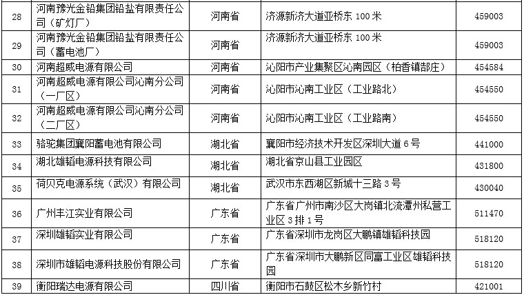 符合《鉛蓄電池行業(yè)規(guī)范條件(2015年本)》企業(yè)名單(第一批)