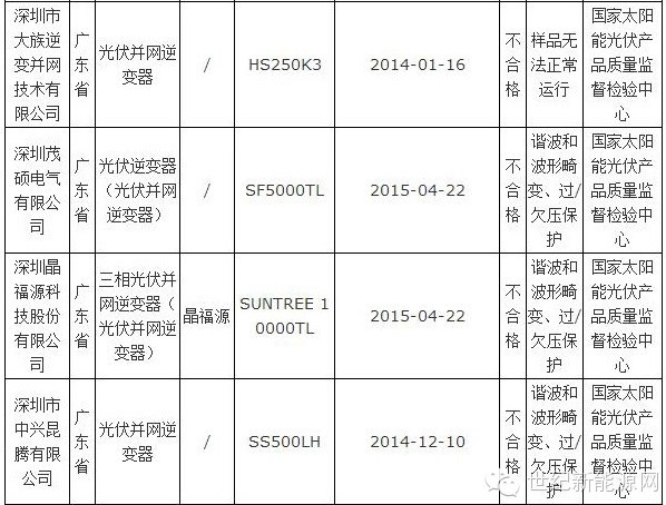 其中,本次共抽查了北京、河北、上海、江蘇、浙江、安徽、福建、山東、河南、湖北、湖南、廣東、陜西等13個(gè)省、直轄市55家企業(yè)生產(chǎn)的55批次光伏并網(wǎng)逆變器產(chǎn)品。