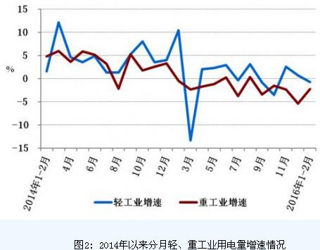二、工業(yè)用電量增長持續(xù)不振,輕、重工業(yè)用電量均負增長