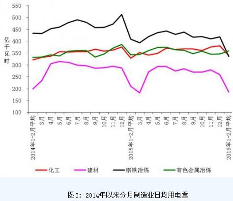 三、除化工用電保持正增長外,其他高耗能行業(yè)用電量大幅回落