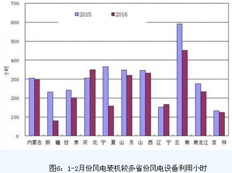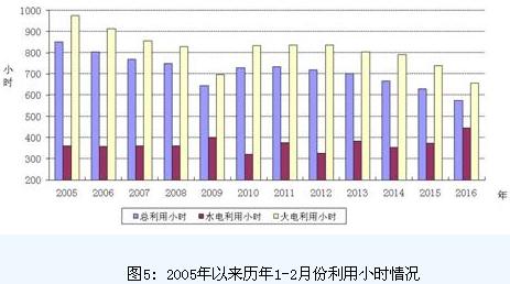 分類型看,1-2月份,全國水電設(shè)備平均利用小時445小時,同比增長72小時;水電裝機容量超過1000萬千瓦的7個省份中,只有青海同比下降50小時,其余省份都有所增加,其中湖南增長289小時,貴州增長121小時,廣西增長100小時。全國火電設(shè)備平均利用小時656小時,同比下降83小時,降幅比2015年同期擴大31小時;其中北京、河北、江蘇、安徽利用小時數(shù)接近或超過800小時;與上年同期相比,共有25個省份火電利用小時同比下降,其中,四川、西藏、青海及福建下降超過300小時。全國核電設(shè)備平均利用小時1025小時,同比下降68小時。全國風電設(shè)備平均利用小時263小時,同比下降39小時。
