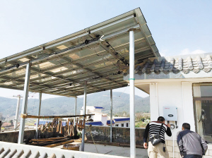 這是一個(gè)精準(zhǔn)扶貧的生態(tài)環(huán)保示范項(xiàng)目,利用光伏發(fā)電技術(shù)發(fā)電,目前在安寧市八街街道辦事處相連村民委員會(huì)、窯坡村民委員會(huì)農(nóng)戶家的房頂安裝了四套光伏發(fā)電陽(yáng)光棚系統(tǒng),搭建安裝高性能太陽(yáng)能薄膜發(fā)電組件,采用弱光發(fā)電技術(shù),光伏發(fā)電陽(yáng)光棚系統(tǒng)功率從3千瓦到5千瓦。