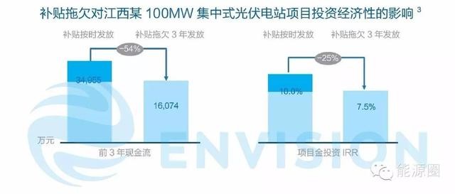 以江西某項(xiàng)目為例,補(bǔ)貼拖欠三年,現(xiàn)金流減少1.9億元,IRR嚴(yán)重下滑。