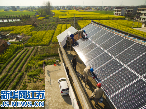 3月28日,海門市四甲鎮的電力施工人員正在為四甲鎮余合村姜雪強家中辦理屋頂光伏發電并網聯通。姜雪強平時一直在外地打工從事水電安裝工作,他對光伏發電的關注早在三年前,這次他個人投資六萬余元,在自家屋頂安裝了10千瓦的太陽能光伏組件。