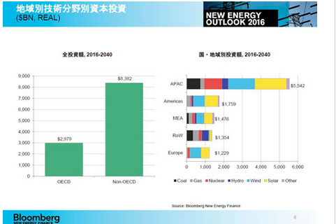 調查公司彭博新能源財經(BNEF)6月13日發布了能源相關長期預測的2016年度版2016年新能源前景(New Energy Outlook 2016)。