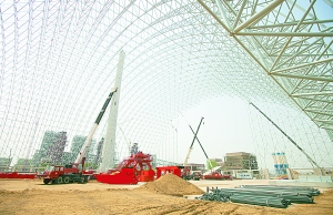 據華能營口仙人島熱電項目工程部主任賀旭虎介紹,建設現場共有7家施工隊伍1300余人員在同步施工,1、2號鍋爐已經安裝完成,正在進行脫硝、電除塵等主要輔機設備安裝。該項目引進新加坡樣板經驗,從安全、質量、進度多方面嚴格按照樣板標準進行施工,施工現場實行腳手架驗收掛牌制度,專業(yè)安全技術人員每天進行安全檢查驗收,同時實行腳手架顏色區(qū)分制度,提高施工隊伍責任感。此外,為適應環(huán)境保護的要求,穹形煤場網架工程采用全封閉無塵設計結構,可保證不影響周邊環(huán)境,該工程在國內處于領先水平。