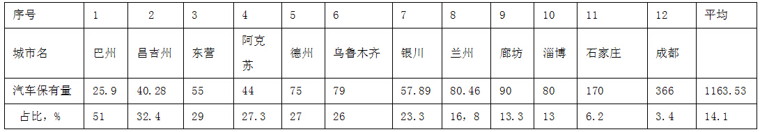 表二、12個城市CNG汽車與當(dāng)?shù)仄嚤S辛康恼急扰判虮?br />