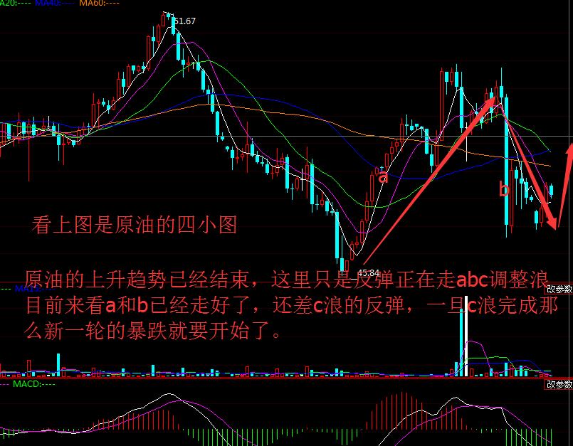 C浪是反彈向上的,因此今晚原油的操作就是逢低做多為主,做空為輔。4小時的macd綠柱逐漸縮短,預計明日會翻紅,這也是逢低做多的證據。以美原油為例,可以在47.55布局多單,止損在47.30,止贏48.30附近。