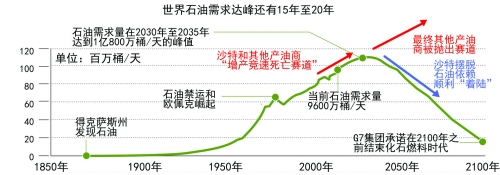 據伯恩斯坦的世界石油消費預測顯示,到2035年左右,全球石油絕對消費量將到達峰值。這意味著,屆時,滿足世界能源新增需求將由石油替代品來承擔。石油在經濟、環境、技術等綜合成本作用下,需求將逐漸下降。這是能源更迭的必然趨勢。而沙特提出的“2030轉型愿景”與石油消費達峰趨勢幾乎不謀而合。這表明,海灣產油國正在抓住石油緩慢增長的最后20多年,應對石油式微的能源新格局。換句話說,石油在世界能源消費結構中的穩中趨降,這一根本轉變推動了產油國逐漸弱化石油經濟支柱的選擇。