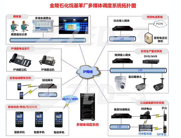 通過對金陵石化烷基苯廠的實(shí)地調(diào)研以及對其調(diào)度系統(tǒng)需求的深入了解,捷思銳科技提供了一套基于NGN架構(gòu)的多媒體調(diào)度系統(tǒng),它不僅支持豐富的多媒體調(diào)度功能,還可以與28181視頻監(jiān)控平臺、視頻會議系統(tǒng)、常規(guī)對講網(wǎng)絡(luò)、PSTN電話、運(yùn)營商短信等網(wǎng)絡(luò)充分融合,實(shí)現(xiàn)烷基苯廠所有音視頻系統(tǒng)的整體融合。