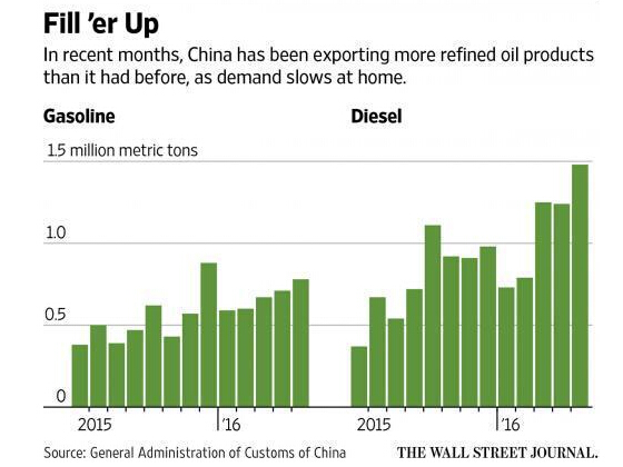 《華爾街日報》報道稱,盡管中國的原油需求起初有助于吸收原油過剩,如今中國不再是“唾手可得”的供應過剩的“緩沖區(qū)”。作為結(jié)果,中國的民營“茶壺”煉油廠正在將其生產(chǎn)滴了柴油和汽油等產(chǎn)品充斥到全球市場。