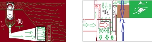 而在海濱水電城模式當中,也必然有類似的形成水循環的能量。這個問題,我以前與中科院專家桂文莊老師探討過,在這里,讓我們一起來分析下面圖示,看一看這些能量都是什么。