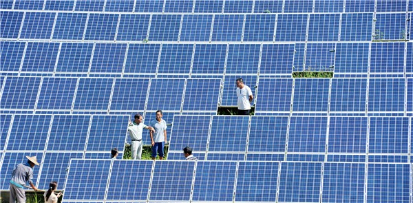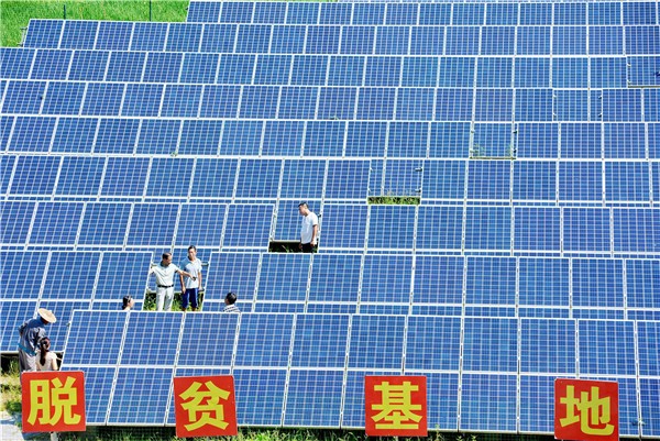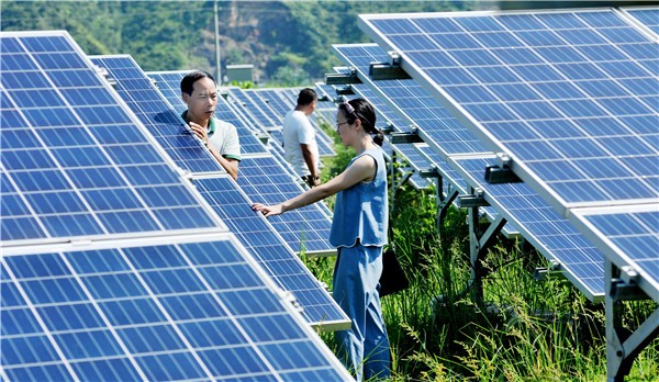 7月23日,上饒縣華壇山鎮(zhèn)彭家塢村光伏太陽能扶貧電站技術(shù)人員正在查看當(dāng)天的發(fā)電情況