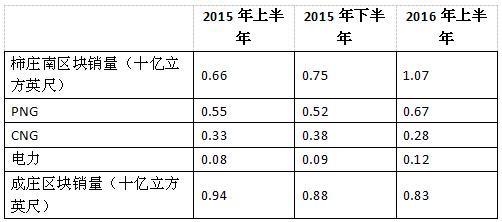 · 2016年上半年柿莊南區塊售氣量與2015年上半年相比增長63%,與2015年下半年相比增長43%
