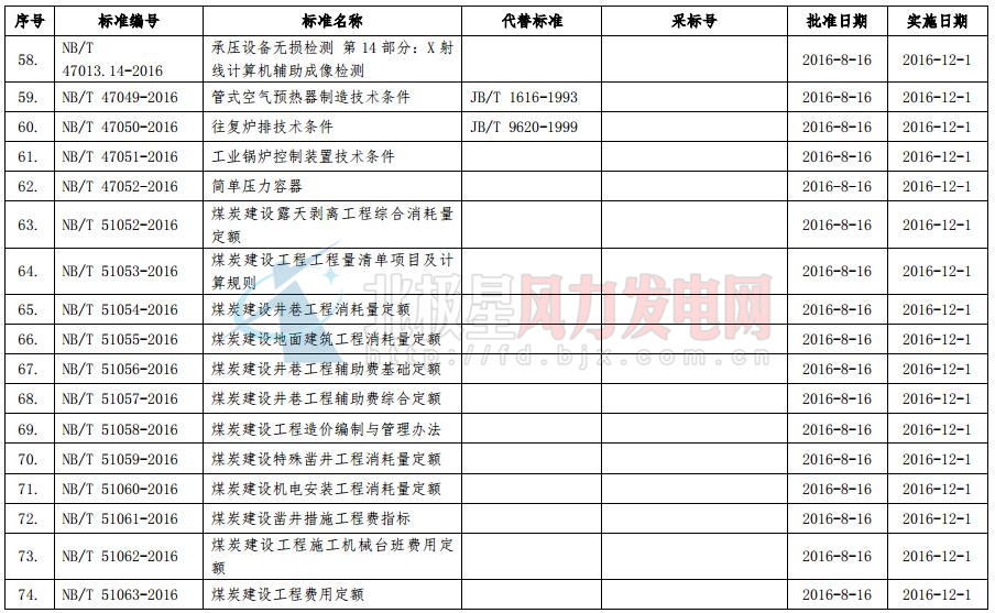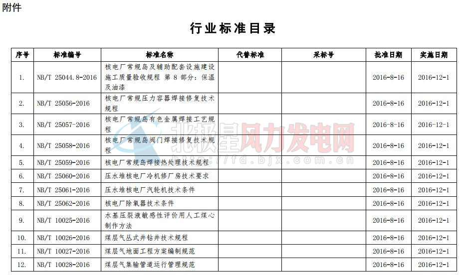 國(guó)家能源局今日發(fā)布2016年第6號(hào)公告。公告稱(chēng),國(guó)家能源局審查批準(zhǔn)了《核電廠常規(guī)島及輔助配套設(shè)施建設(shè)施工質(zhì)量驗(yàn)收規(guī)程第8部分:保溫及油漆》等144項(xiàng)行業(yè)標(biāo)準(zhǔn)(能源標(biāo)準(zhǔn)(NB)75項(xiàng)和電力標(biāo)準(zhǔn)(DL)69項(xiàng))。其中風(fēng)電行業(yè)標(biāo)準(zhǔn)7項(xiàng),8月16日正式批準(zhǔn),12月1日正式開(kāi)始實(shí)行。以下為公告原文及行業(yè)標(biāo)準(zhǔn)目錄: