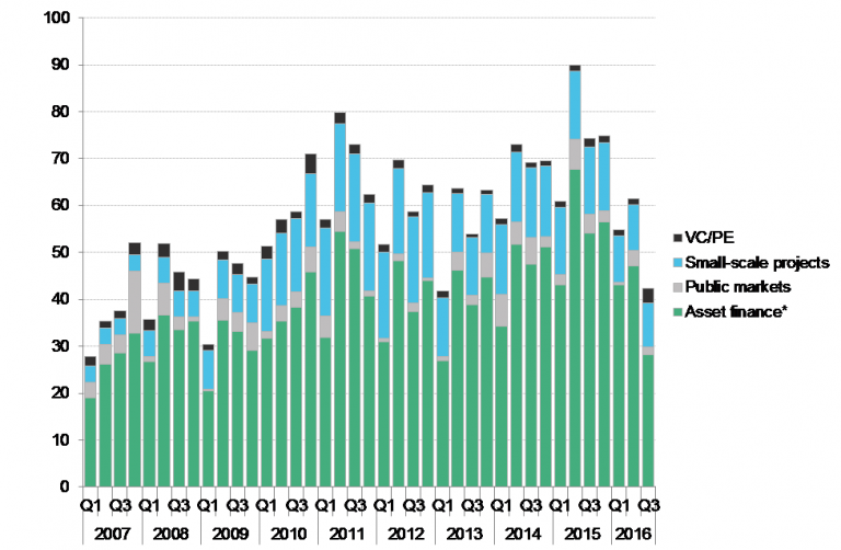 彭博社新能源財經(jīng)表示,盡管從傳統(tǒng)上來說,第四季度是全年投資最忙碌的階段,但是從前三季度的投資情況來看,預(yù)計2016年全球清潔能源投資總額較之2015年仍將繼續(xù)下降。
