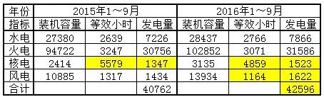 我們不妨來大致推算一下:不考慮水電、火電、風電和核電之外的其他電源,水電和火電的發電量合計存在3.8%的增長,風電和核電的發電量合計則相應地有13%以上的增長,但是風電和核電裝機容量提高了28%,因此設備平均利用小時數約有12%~13%的下降幅度。
